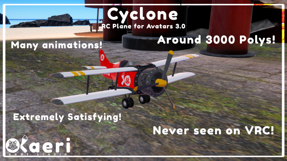 Cyclone is a real, flyable remote controlled plane for VRChat Avatars.